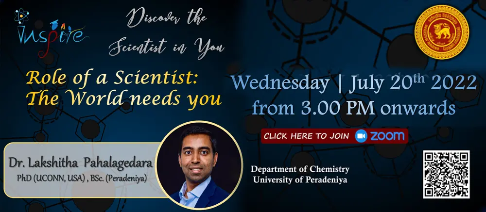 Speaker : Dr. Lakshitha Pahalagedara, PhD (UCONN, USA) , BSc. (Peradeniya)