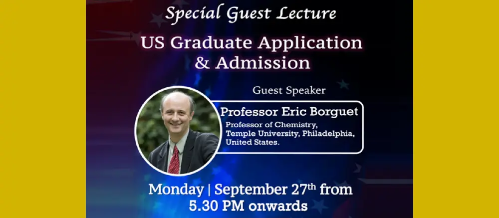 A special guest lecture organized by the Department of Chemistry, University of Peradeniya will be held on the 27th of September 2021 from 5.30 to 6.30 pm via Zoom platform. The guest speaker is Prof. Eric Borguet, a professor at the Department of Chemistry, Temple University, USA, and his talk is titled “US Graduate Application & Admissions”.