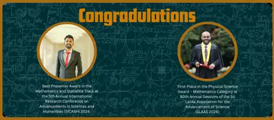 In another commendable achievement, Mr. W.M.T.B. Wijesuriya, a Temporary Demonstrator in the Department of Mathematics, was honoured with the Best Presenter Award in the Mathematics ...