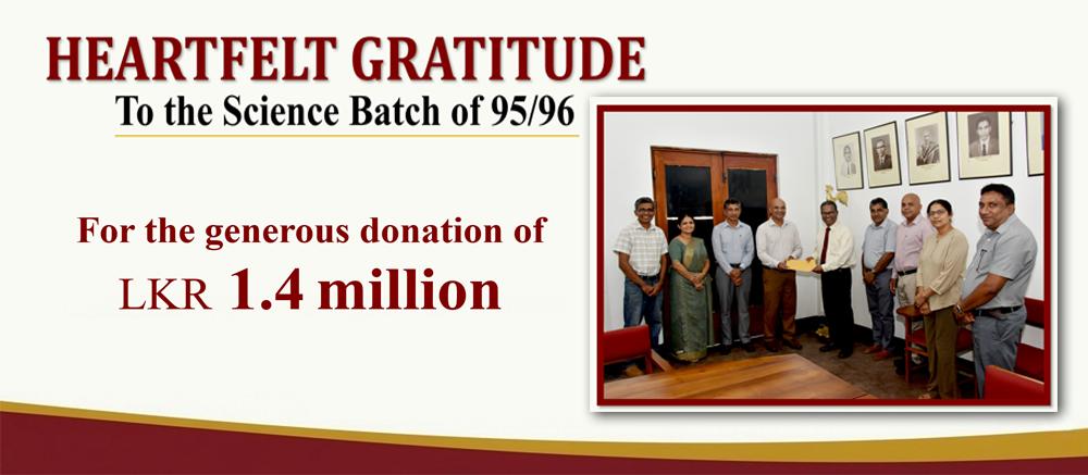 The 95/96 Batch of the Faculty of Science, University of Peradeniya, initiated a fundraising program following the recent disaster that affected the university. With contributions from 160 batch members worldwide, they collected Rs. 1.408 million to support the Faculty of Science Development Fund. The donation aims to address resource shortages resulting from increased student intake and post-disaster challenges, helping improve facilities and restore academic standards. The batch also encourages other alumni to contribute toward the university’s stabilization and upliftment.