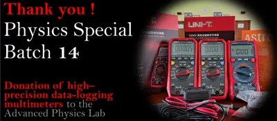 Physics Special Batch 14 for the donation of high–precision data-logging multimeters ...