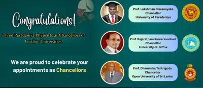 We are proud to announce that three emeritus professors of Physics, who obtained their B.Sc. (Physics Major) degrees from the Department of Physics at the University of Peradeniya, are presently holding the Chancellor positions of three leading Sri Lankan universities. ...