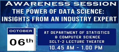 Awareness Session - The Power of Data Science: Insights From an Industry Expert Oct 3, 2023The Power of Data Science: Insights From an Industry Expert ... Read More
